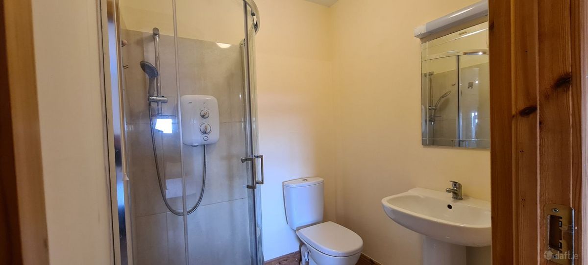 En-suite: 5’3″ × 5’7″ – Polished porcelain tiled floor, electric shower in quadrant enclosure.